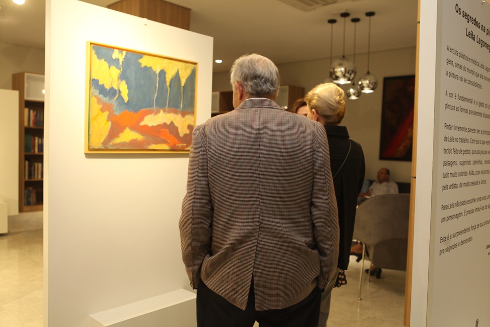 São 15 obras espontâneas, datadas de 2005 e 2018, feitas principalmente com tinta acrílica. “Começo a pintar manchando a tela, depois busco formas dentro daquilo que proponho, vou montando tudo da imaginação”, relata Leila.