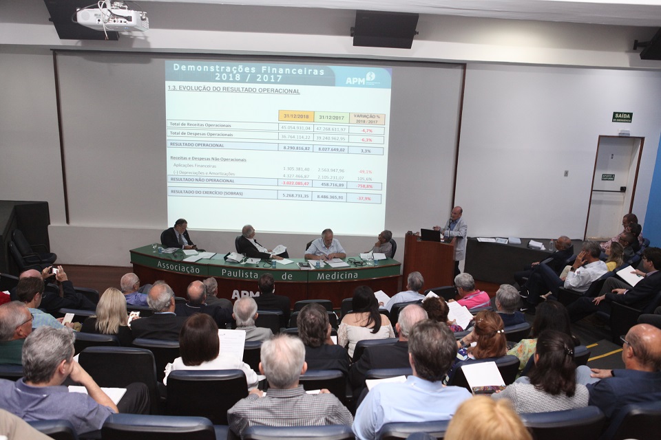 “O ano passado não foi o melhor para a Economia, mas a APM continuou investindo em eventos, em tecnologia e inaugurou seu novo prédio, o Edifício Dr. Florisval Meinão. Apesar de termos tido uma queda de 4,7% nas receitas operacionais em relação a 2017, também conseguimos reduzir as despesas operacionais em 6,3% e obtivemos um resultado operacional positivo, de 3,3%”, declarou João.