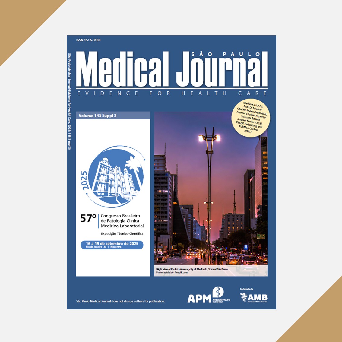Nossa revista São Paulo Medical Journal/Evidence for Health Care, criada em 1932, é uma das mais antigas publicações científicas do País. Seus artigos são indexados nas mais importantes bases de dados do mundo, como Medline, Lilacs, SciELO, Science Citation Index Expanded, Journal Citation Reports/Science Edition (ISI) [fator de impacto 1.6], EBSCO publishing e PubMed Central (PMC).