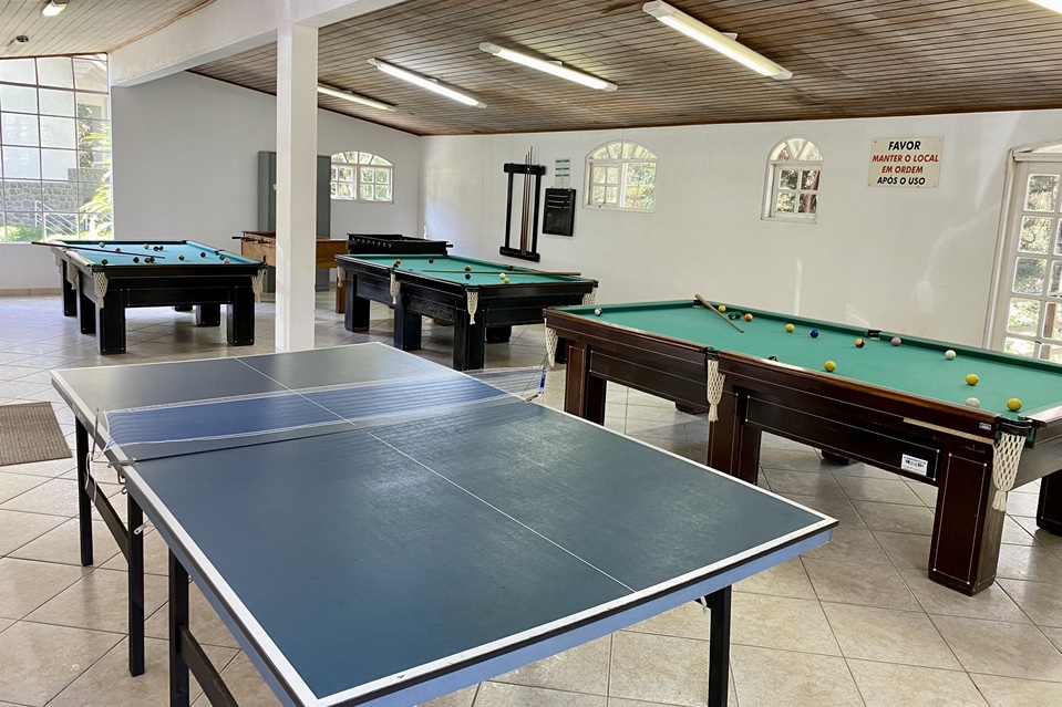 Quadra poliesportiva para jogos de handebol, basquete, vôlei e futsal; quadra de tênis e beach tennis; dois campos de futebol; lago para pesca esportiva; academia equipada; salão de jogos; churrasqueira; centro hípico; playground; parque aquático e saunas.